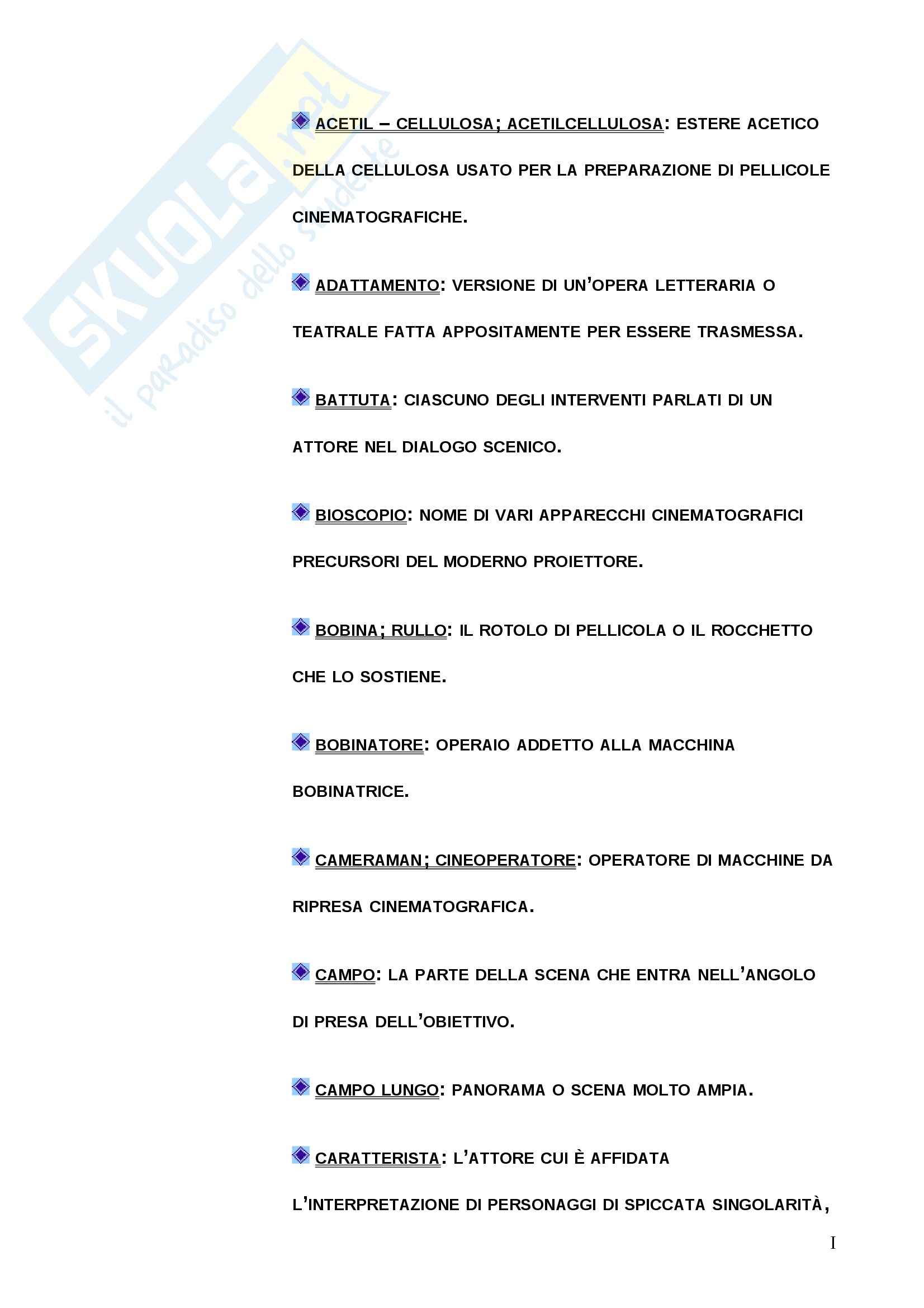 Mediazione Francese Glossario Termini Cinematografici Italiano Francese