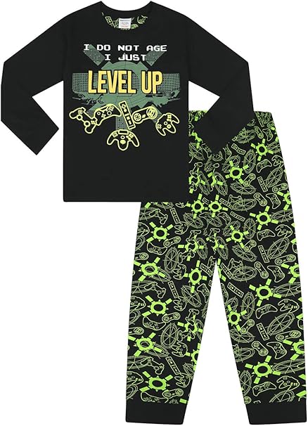 Pigiama Lungo Per Bambini Con Scritta In Inglese I Do Not Age I Just Level Up Nero 9 10 Anni Amazon It Abbigliamento