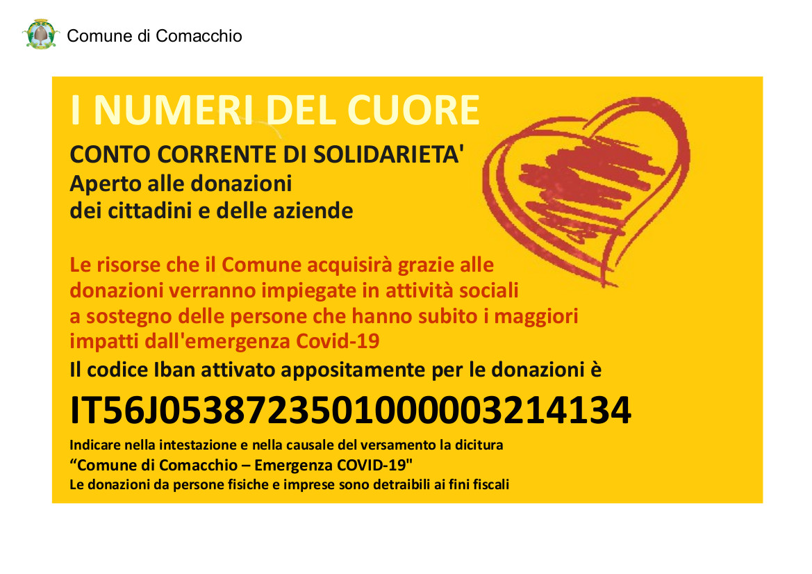 16 05 I Numeri Del Cuore Il Comune Di Comacchio Apre Un Conto Corrente La Per La Solidarieta Comune Di Comacchio