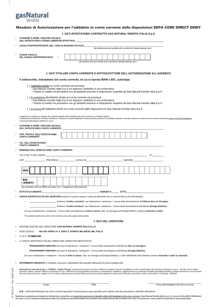 Mandato Sepa Core Cliente Domestico Pdf 1 8 Mb
