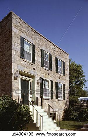 Exteriors Tardi Federale Periodo Casa Pietra Verde Scuro Otturatori E Porta Principale Gas Sguardo Lanterne Passi A Porta Principale Inglese Seminterrato Appartamento Tetto Archivio Immagini U Fotosearch