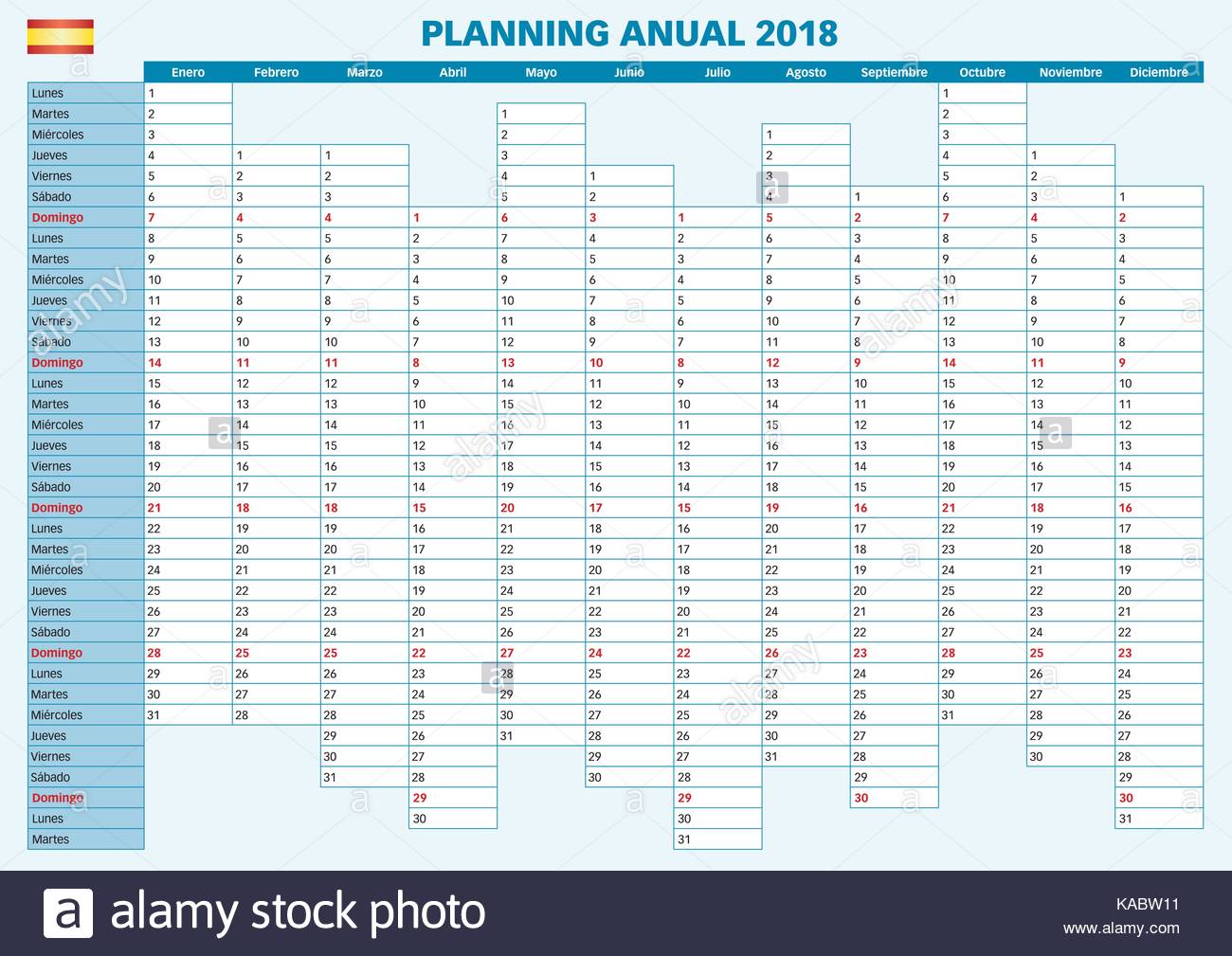 18 Planner Annuale Spagnolo Il Calendario Per L Anno 18 Anno Planner Settimana Inizia Il Lunedi Immagine E Vettoriale Alamy