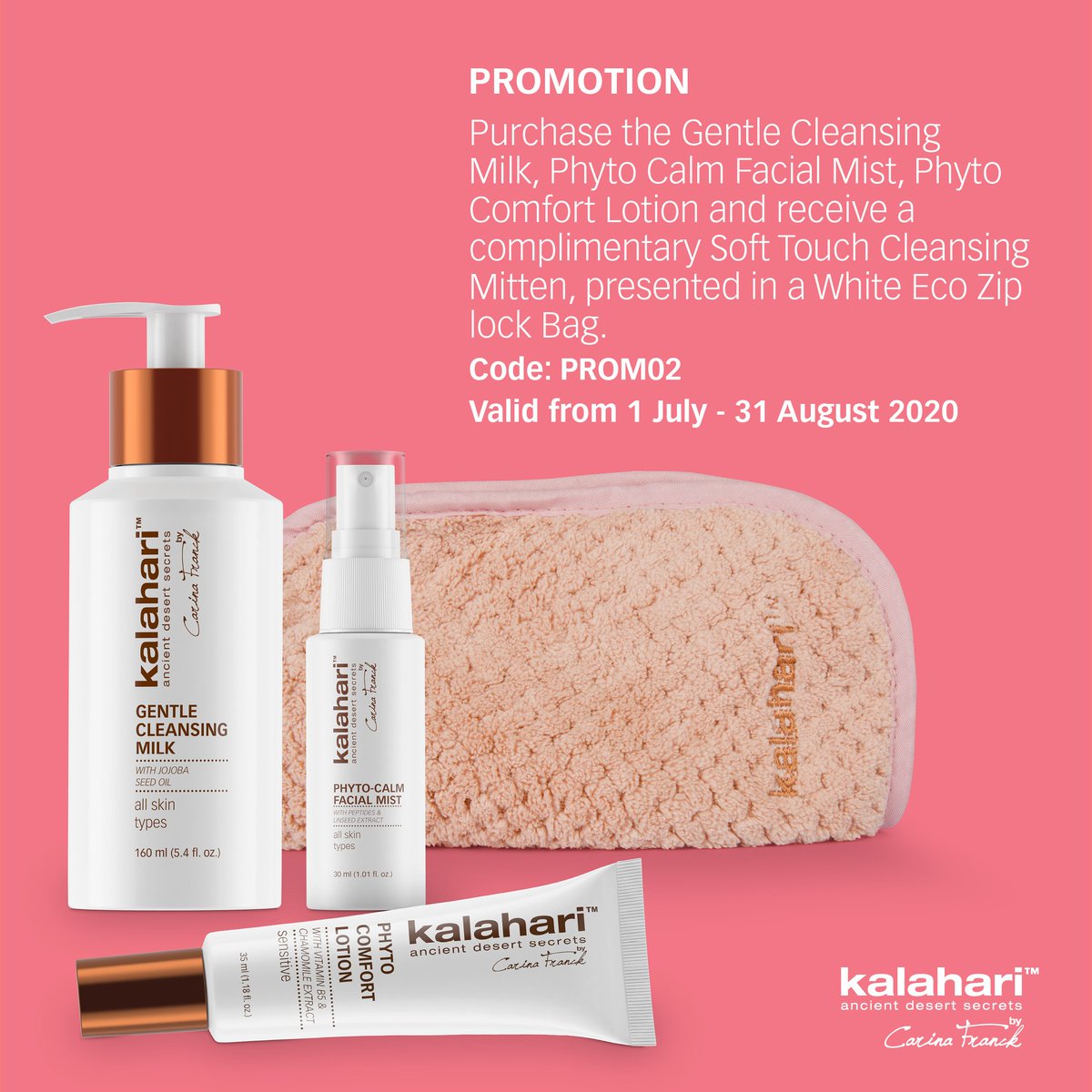 Kalahari Lifestyle Soothing Skincare For Sensitive Or Sensitised Skin Receive A Free Soft Touch Cleansing Mitten When You Purchase The Following Products Gentle Cleansing Milk Phyto Calm Facial Mist And Phyto