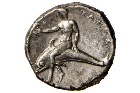 Greek Coins Monete Greche Calabria Taranto Didramma Cavaliere A D R Taras Su Delfino A