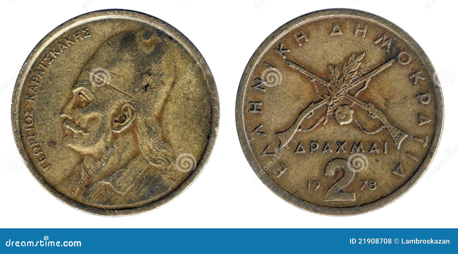 Vecchia Moneta Greca Due Dracme Fatte In 1978 Fotografia Stock Immagine Di Soldi Globale