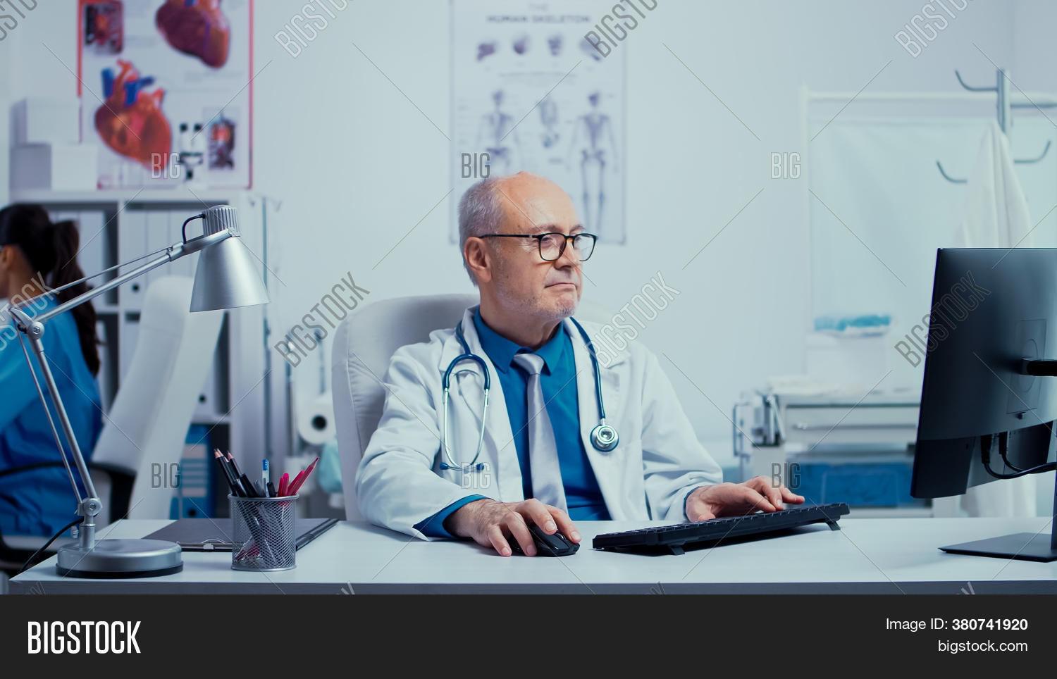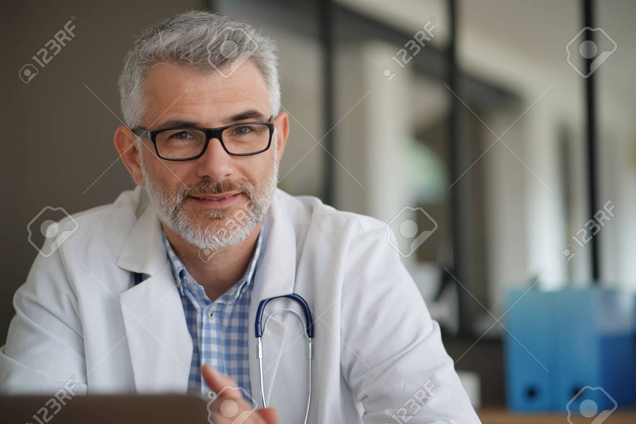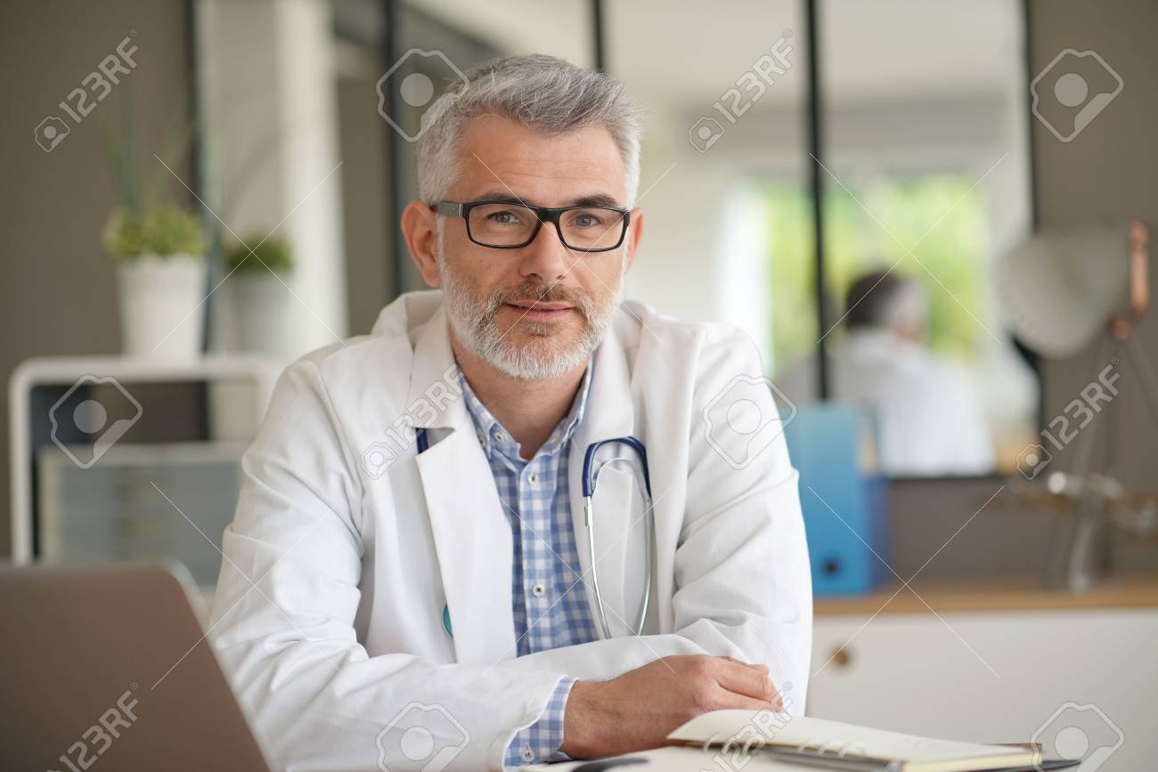 Elderly Male Doctor Working In Private Clinic Stock Image Image Of Handy Doctor