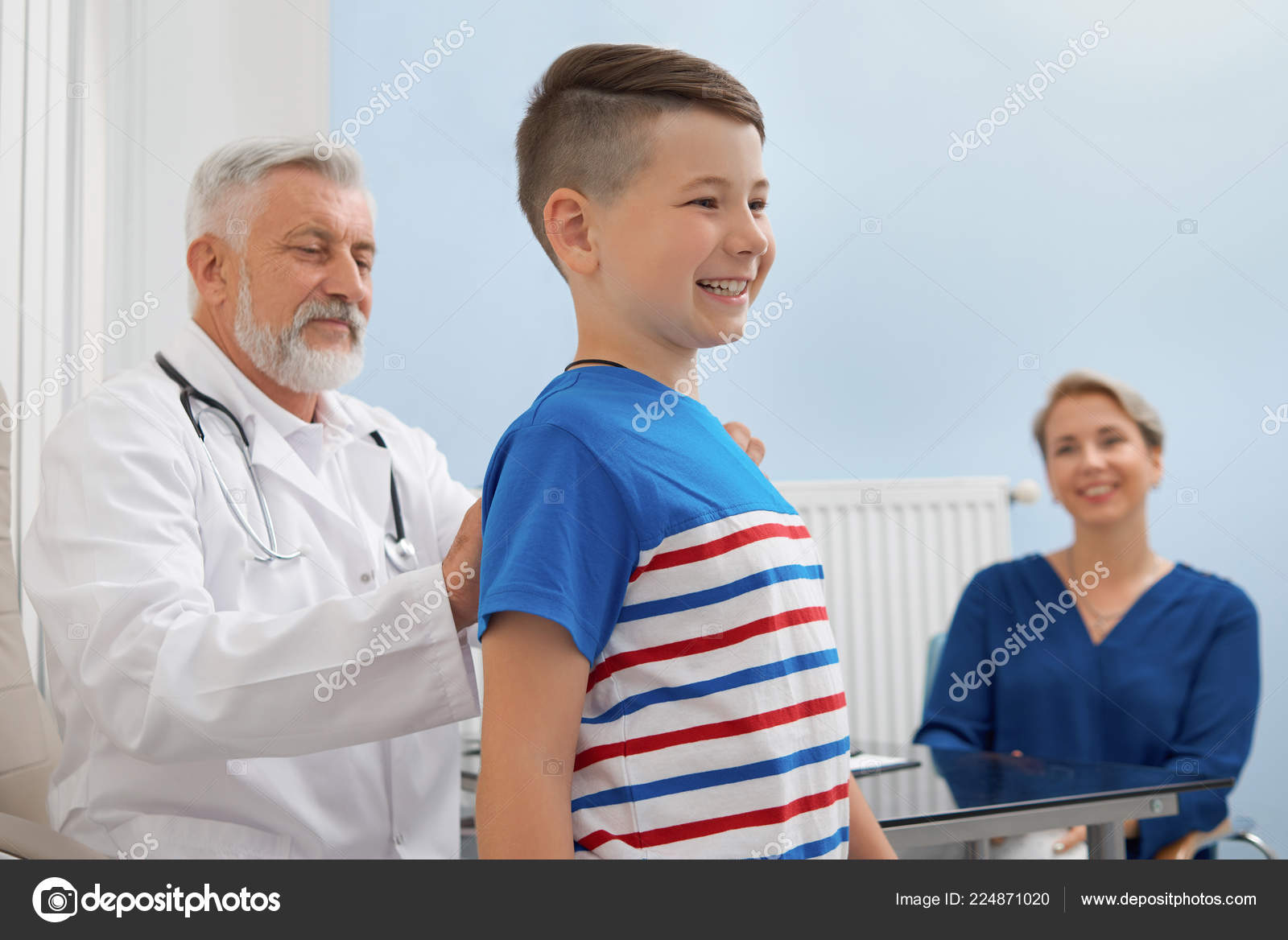 Doctor Looking At Posture Of Boy In Private Clinic Stock Photo C Serhii Bobyk Gmail Com