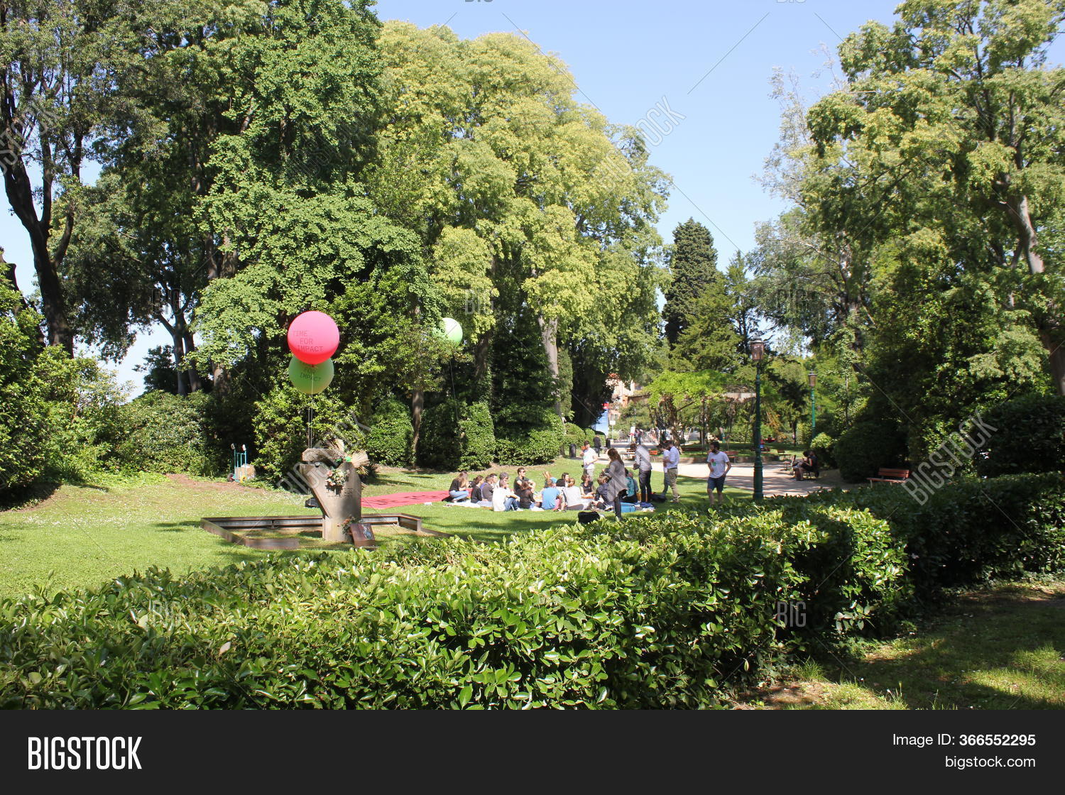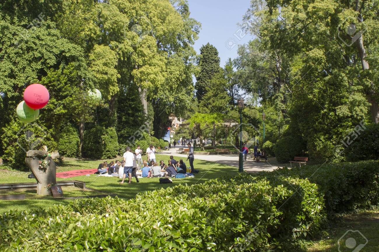 Venice Italy May 16 Group Of People Seat On The Giardini Stock Photo Picture And Royalty Free Image Image