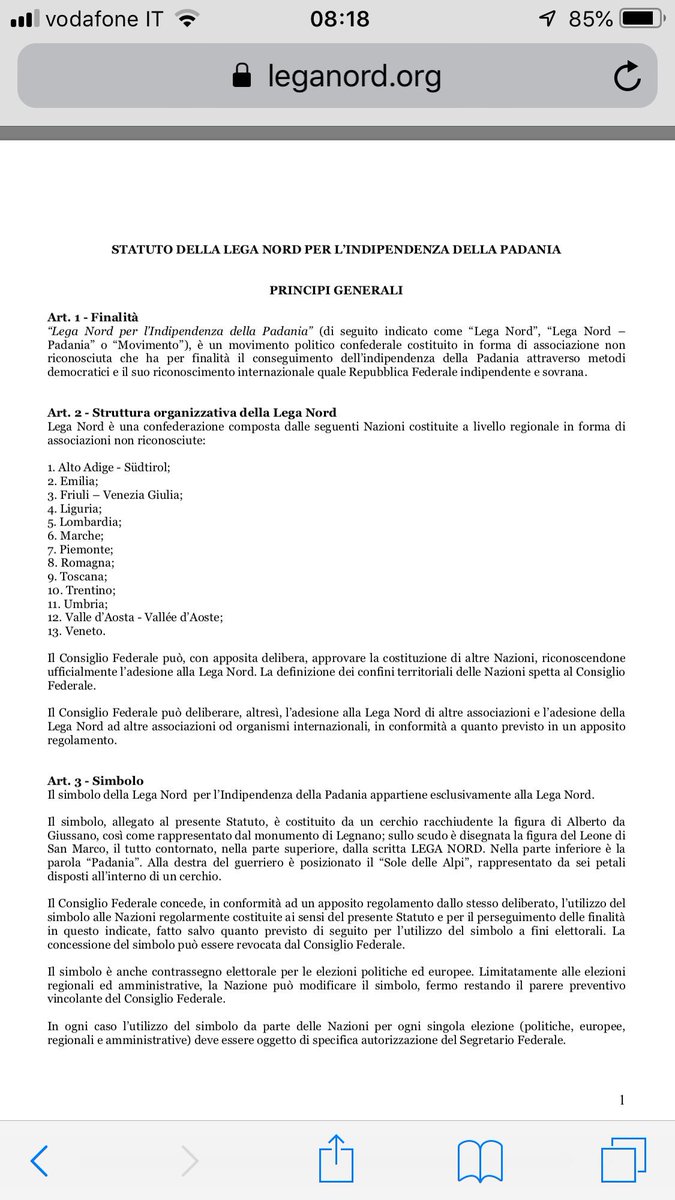 W Il M5s L Attuale Statuto Della Lega Nord Lo Cambiate Facebook