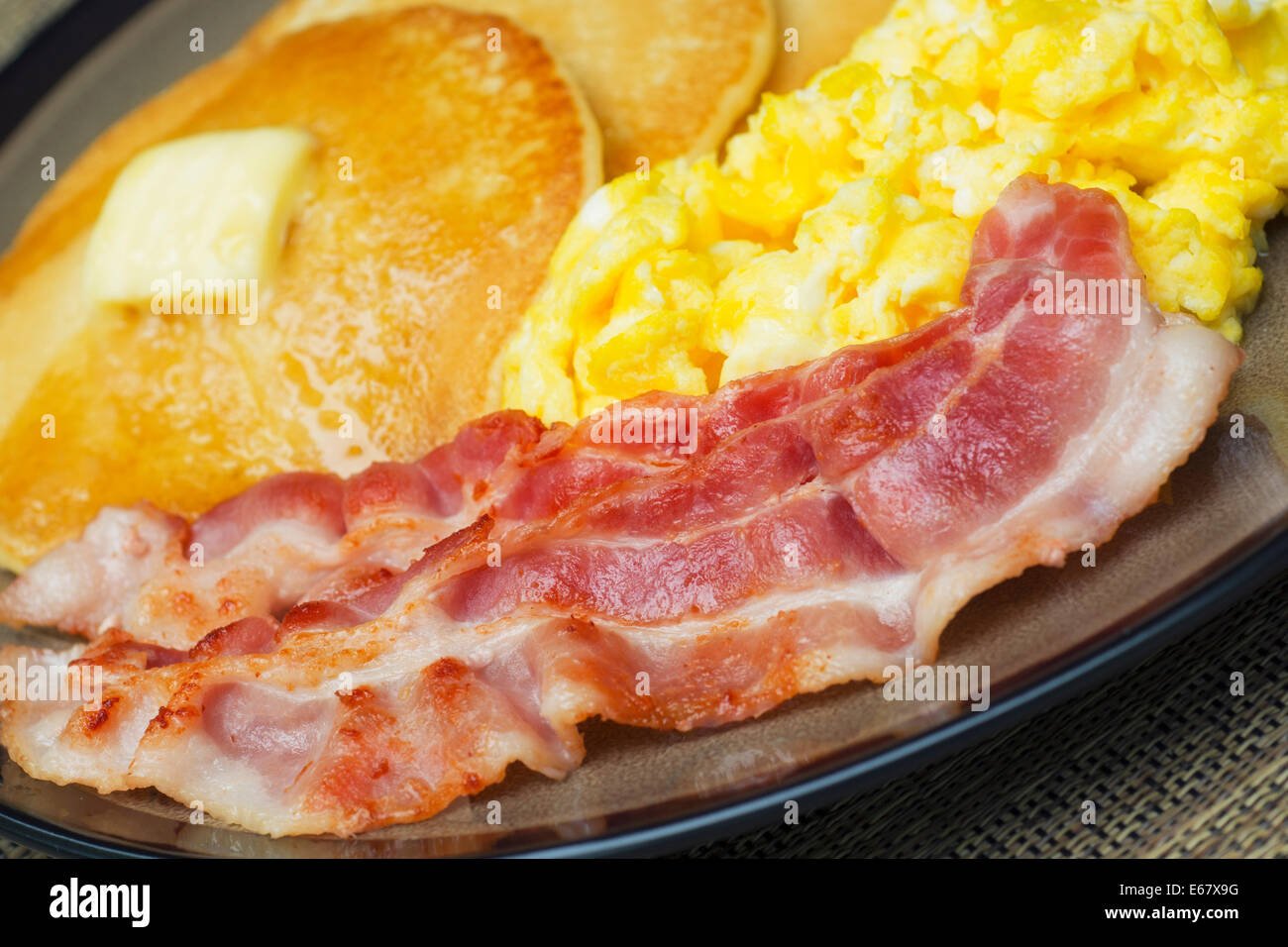 Uova E Pancetta Frittelle Uova Strapazzate E Pancake Prima Colazione Foto Stock Alamy