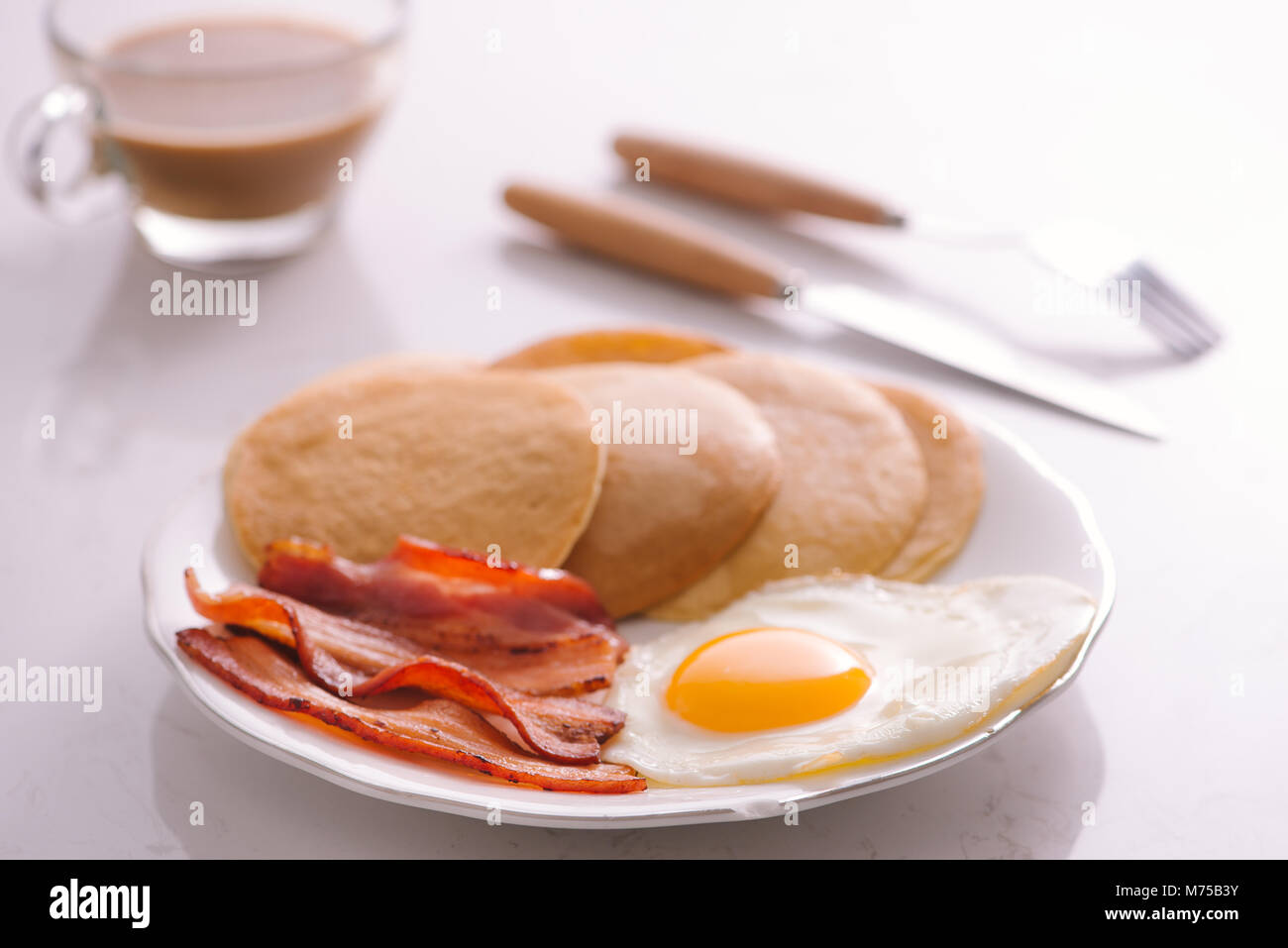 Una Sana Colazione Americana Completa Con Uova E Pancetta Frittelle Foto Stock Alamy
