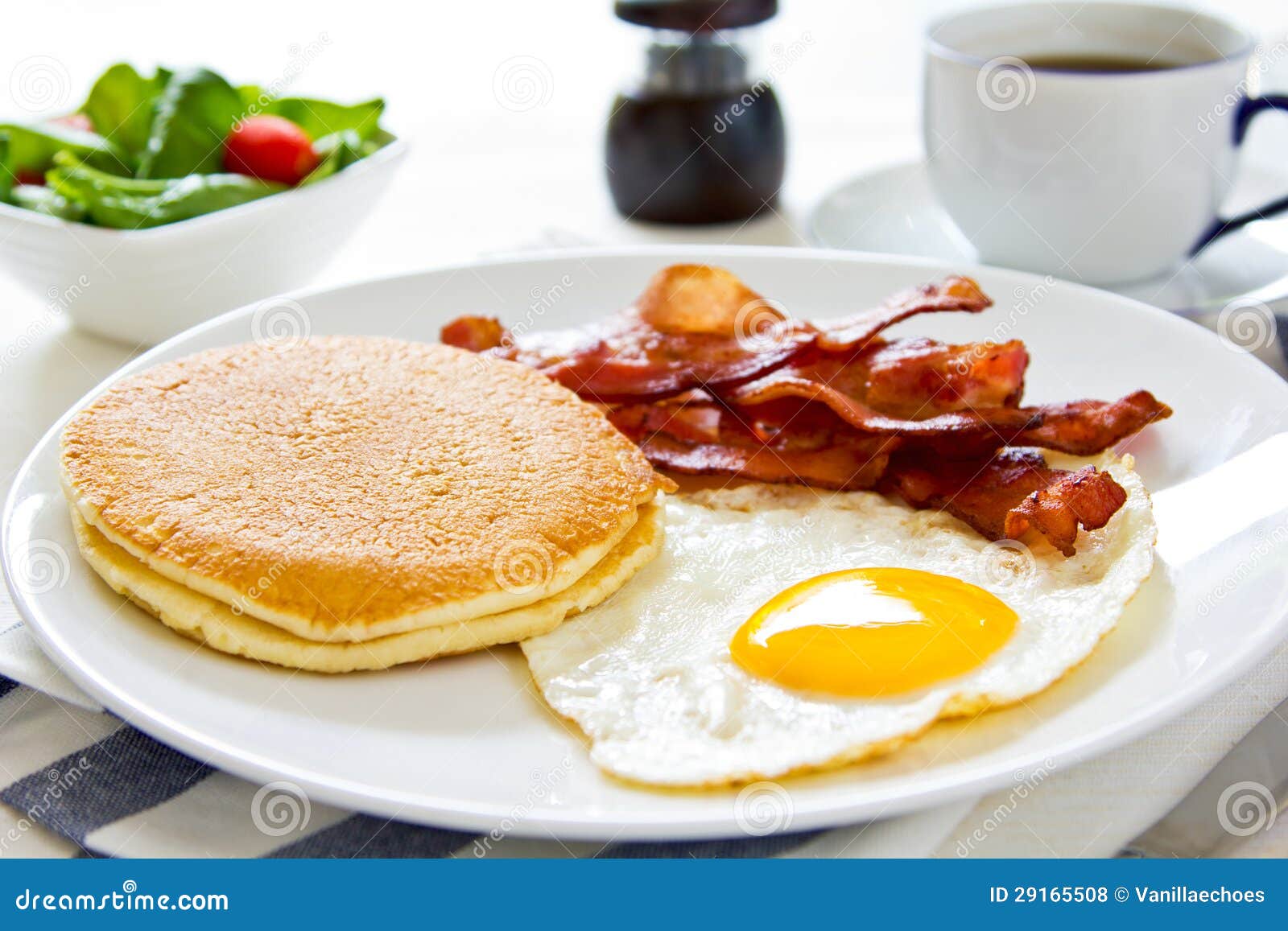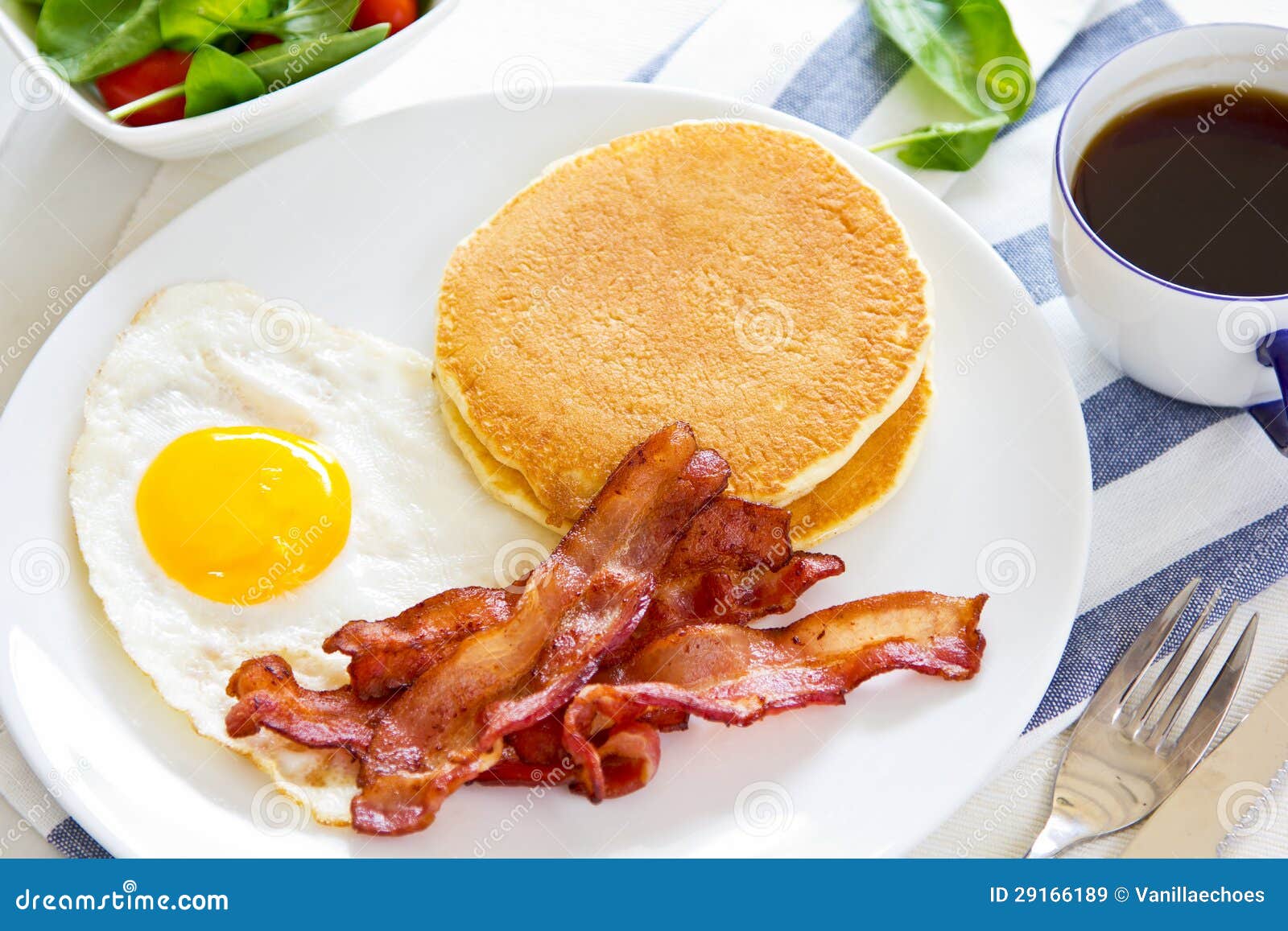 Pancake Con Bacon E L Uovo Fritto Fotografia Stock Immagine Di Sano Cuisine