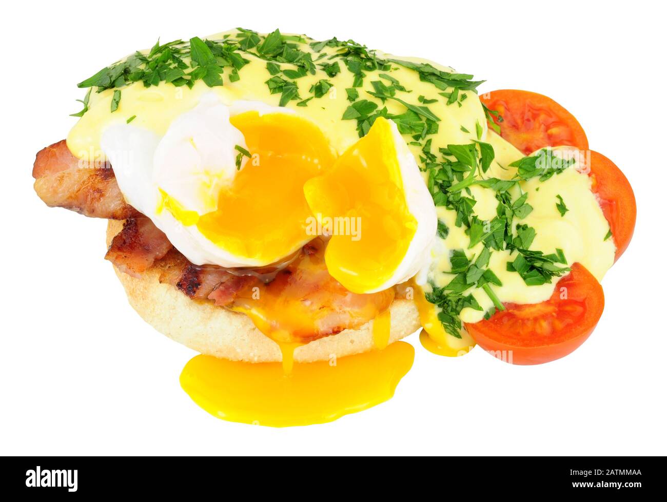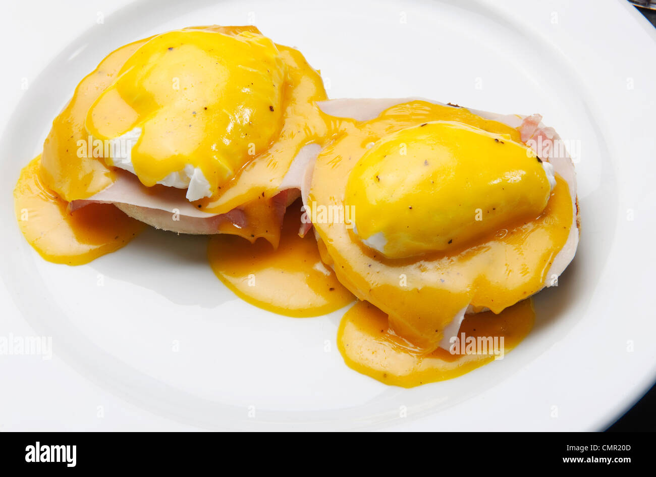 Uova Benedict E Un Piatto Di Due Meta Di Un Muffin Inglese Guarnita Con Prosciutto O Pancetta Uova In Camicia E Salsa Olandese Foto Stock Alamy