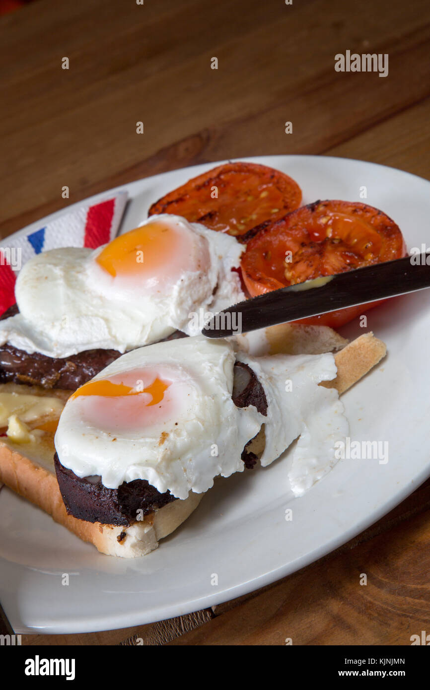 Una Prima Colazione Inglese Con Piastra Di Uovo In Camicia Su Toast Imburrato Con Pomodoro Grigliate Foto Stock Alamy