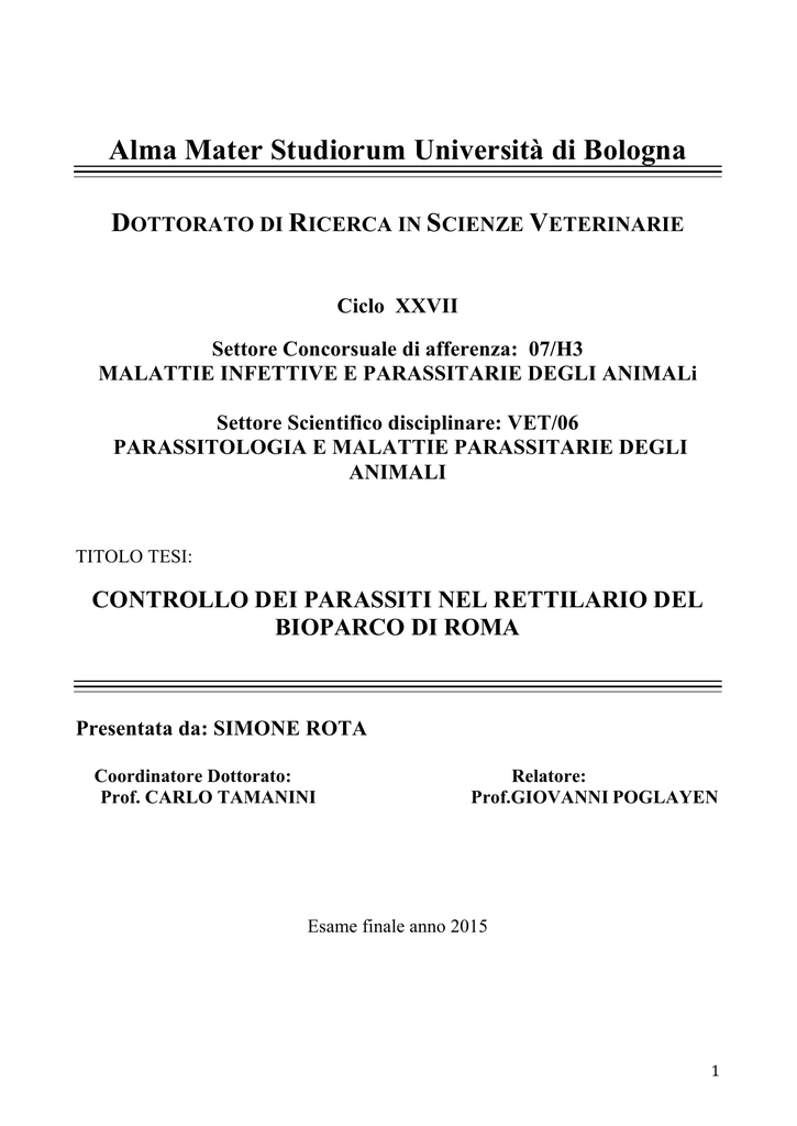 JO Giornale di Malattie Infettive e Parassitarie JF Giornale di Malattie Infettive e Parassitarie SN IS 9 ER Powered by Pure, Scopus & Elsevier Fingerprint Engine. RICERCA – MALATTIE PARASSITARIE (LAUREATA FREQUENTATRICE) Università degli studi di Bologna, Scuola di Agraria e Medicina Veterinaria giugno 15 – Presente 4 anni 5 mesi Bologna, Italia. 4 ‖Istituto Superiore di Sanità, Dipartimento di Sanità Pubblica Veterinaria e Alimentare.