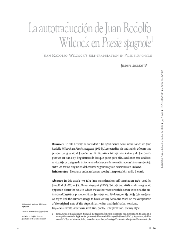 Pdf Wilcock S Self Translation In Poesie Spagnole Jeremias Bourbotte Academia Edu