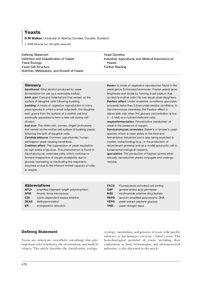 Yeast These reviews, however, do not de voteanyattention to the problemof floccul ence in brewing yeasts The importance of the constituents of the cell surface in deter mining whether flocculence occurs in yeast strains or not has been recognized only recently, however, andit is the object of the present review to bring together knowledge. Yeast cells reproduce through budding or binary fission which are both methods of asexual reproduction (Horst, 10) Budding A new yeast cell is formed through mitotic cell division and remains attached as a bud on the old cell until it splits and becomes independent Here, the parent cell produces an outgrowth that finally splits to become. Yeast These reviews, however, do not de voteanyattention to the problemof floccul ence in brewing yeasts The importance of the constituents of the cell surface in deter mining whether flocculence occurs in yeast strains or not has been recognized only recently, however, andit is the object of the present review to bring together knowledge.