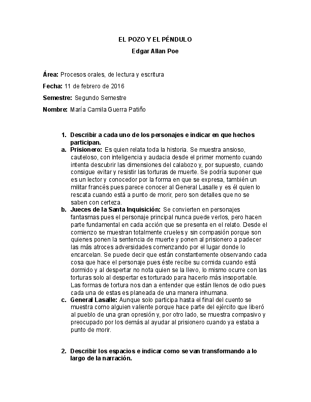 Doc El Pozo Y El Pendulo Maria Camila Academia Edu