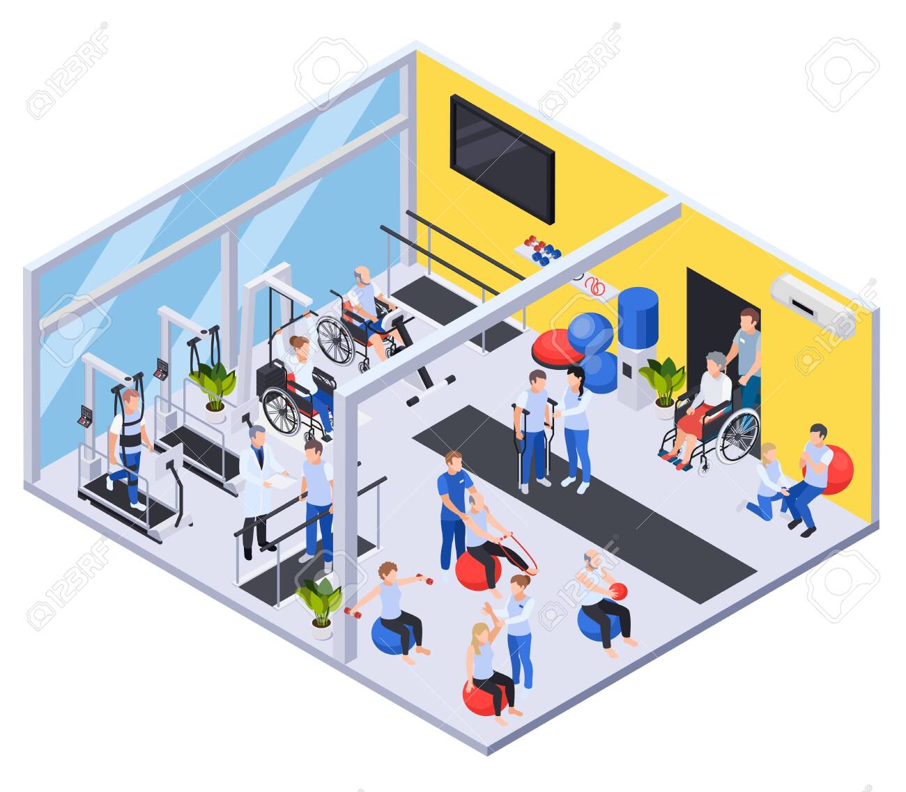 Medical Rehabilitation Center Interior Isometric View With Physiotherapy Royalty Free Cliparts Vectors And Stock Illustration Image