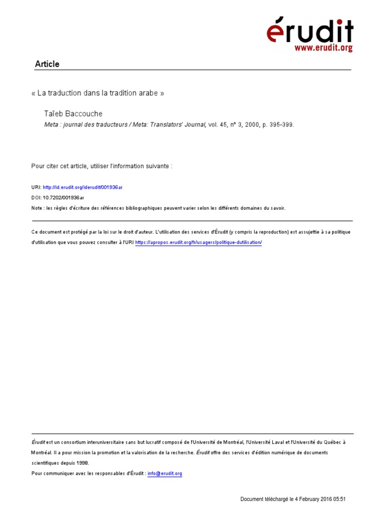 La Traduction Dans La Tradition Arabe Arabe Traductions