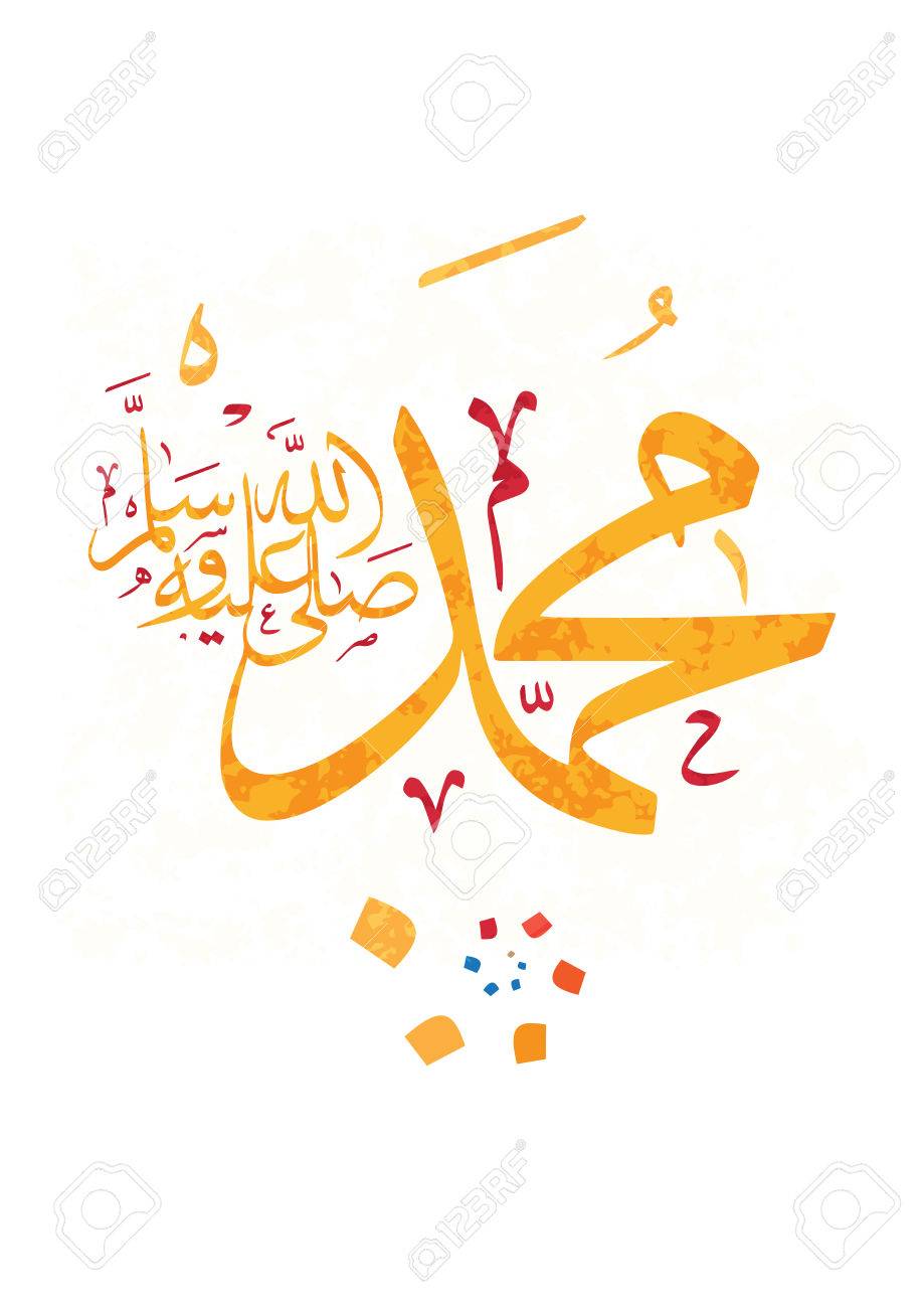 La Traduction De La Calligraphie Arabo Arabe Nom Du Prophete Muhammad La Paix Soit Sur Lui Fond Islamique Et Belle Decoration Clip Art Libres De Droits Vecteurs Et Illustration Image