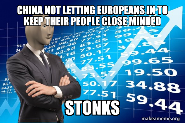 China Not Letting Europeans In To Keep Their People Close Minded Stonks Stonks Only Go Up Make A Meme