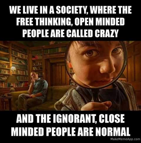 We Live In A Society Where Free Thinking Open Minded People Are Called Crazy The Ignorant Close Minded People Are Normal Spirit Science Crazy Meme On Esmemes Com