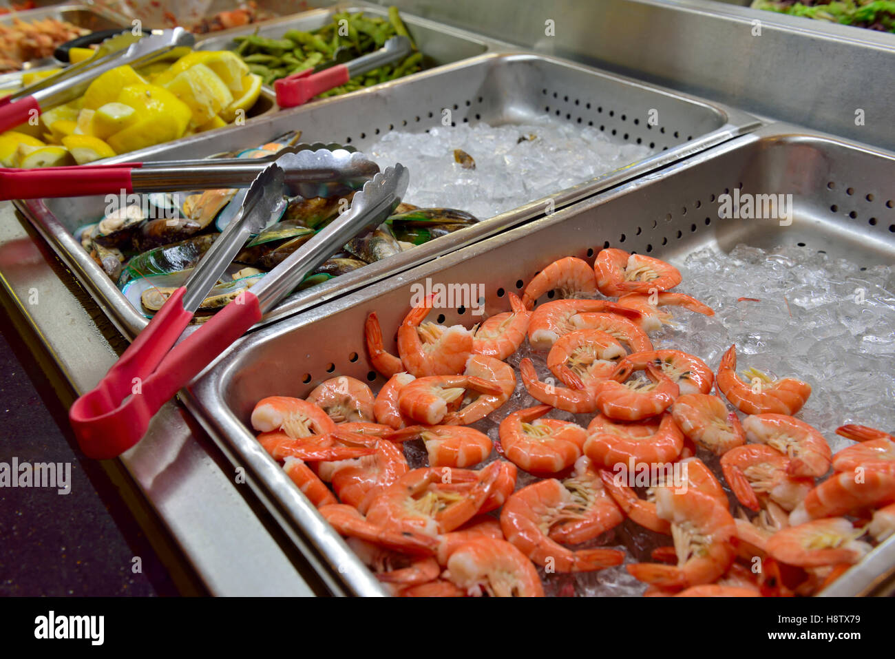 Shrimp On Ice In All You Can Eat Restaurant Stock Photo Alamy