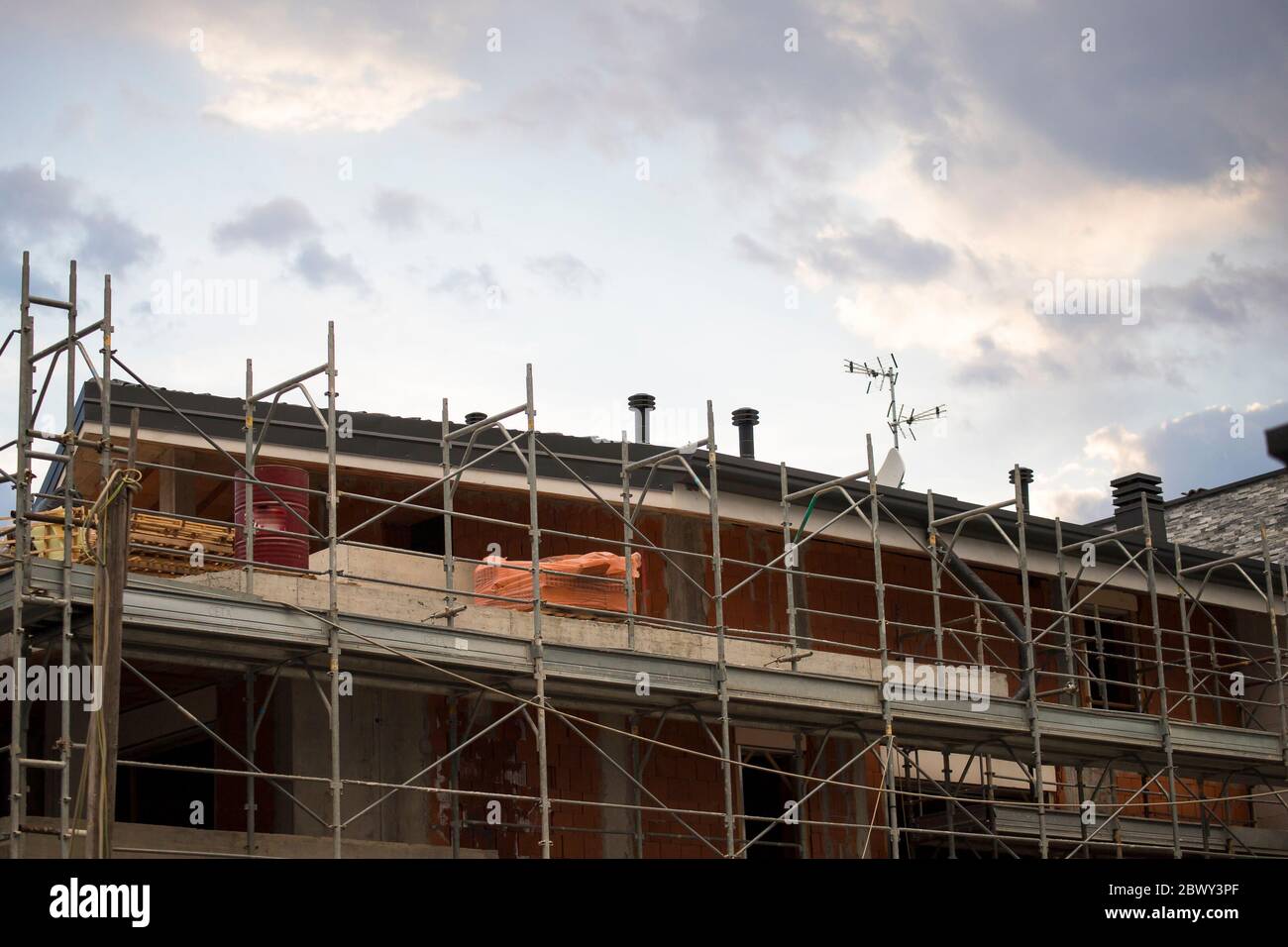 Construction Site Of Building With Scaffoldings Stock Photo Alamy