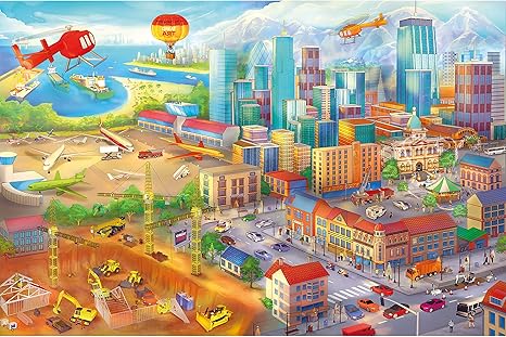 Amazon Com Kid S Room Nursery Photo Wallpaper City In Comic Style Picture Decoration Hidden Objects Building Site Helicopter Airplane Image Decor Wall Mural 7x55 1in 210x140cm Posters Prints