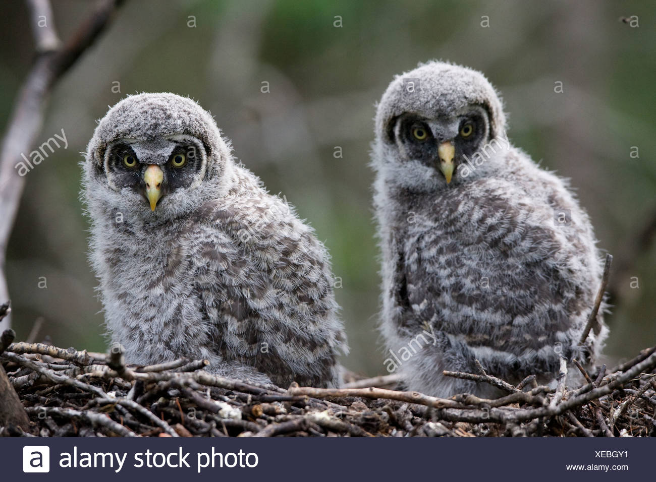 La Chouette Lapone Strix Nebulosa Des Profils Et Les Oisillons Au Nid Nest Cadre Est L Homme Ostersund Suede De Juin Photo Stock Alamy