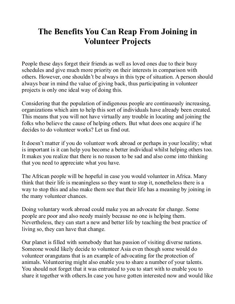 Volunteer Work Free Essay Example