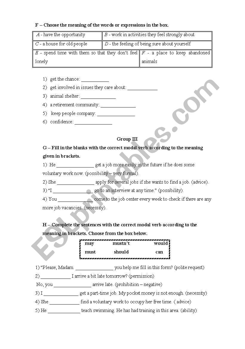 Voluntary Work Esl Worksheet By Alvesonia
