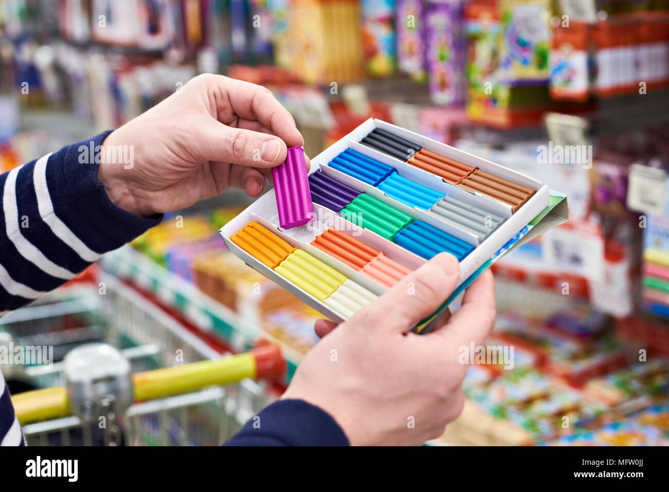 Buyer Chooses Plasticine In The Stationery Store Stock Photo Alamy