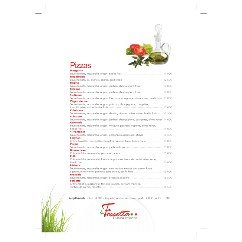 La Fossetta, Lesquin consultez 114 avis sur La Fossetta, noté 4,5 sur 5 sur Tripadvisor et classé #1 sur 29 restaurants à Lesquin. Ma commande Vous êtes plutôt Base crème Base tomate Boisson Pizzas Pâtes Salade Fossetta. LA FOSSETTA Lille 15, rue des Fossés Restaurant italien et pizzeria Est il encore besoin de présenter cette véritable institution lilloise qui compte.