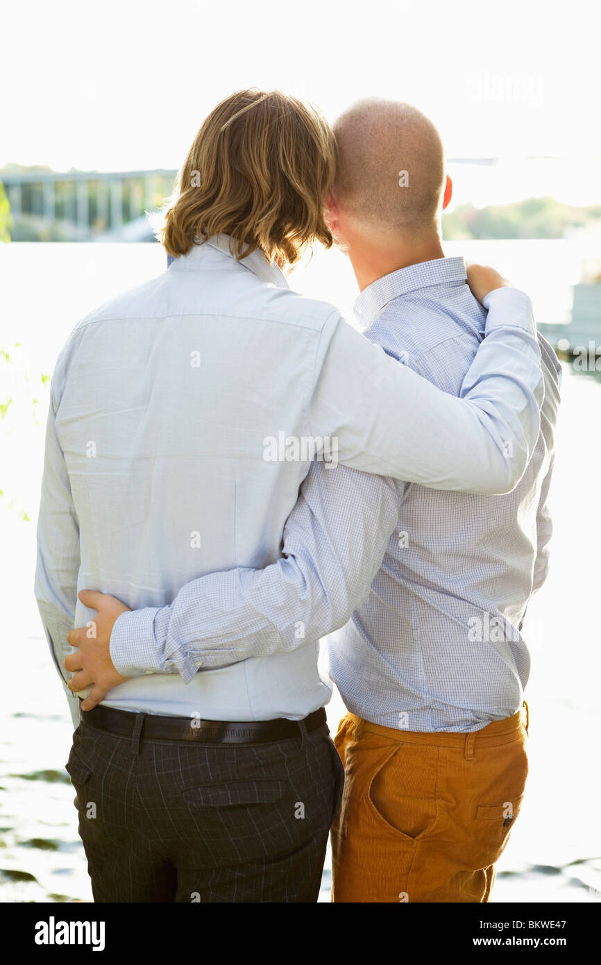 Due Gay Che Si Levano In Piedi Al Bordo Dell Acqua Foto Stock Alamy