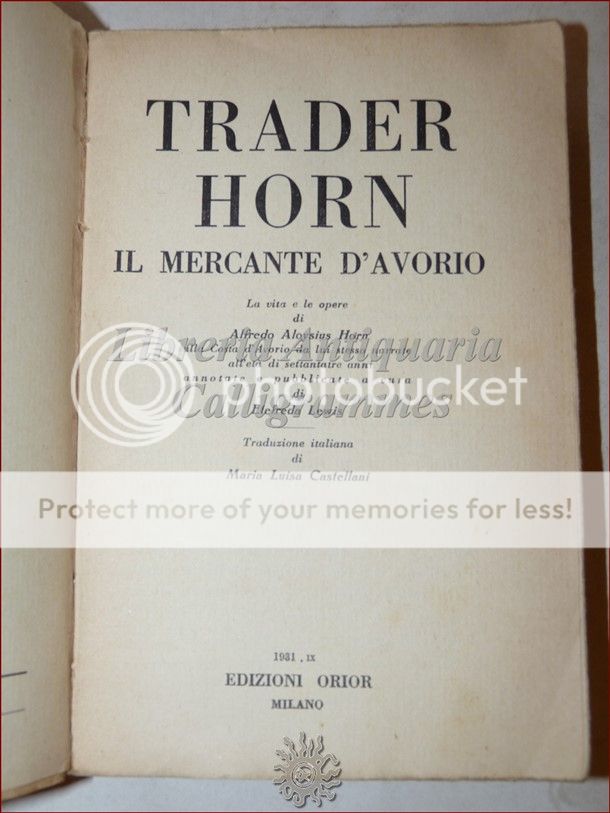 Trader Horn Mercante D Avorio Vita E Opere Di Alfred A Horn 1931 Orior Ebay