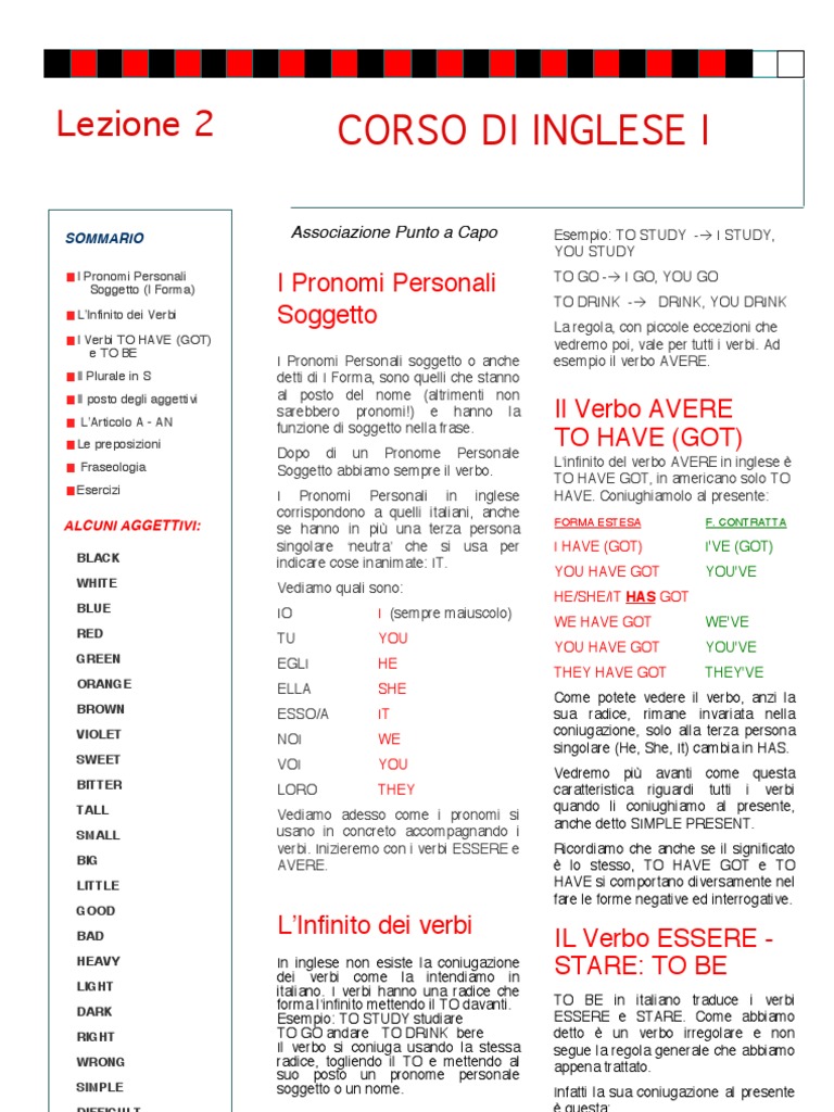 Elementi Di Base Della Grammatica Inglese Docsity