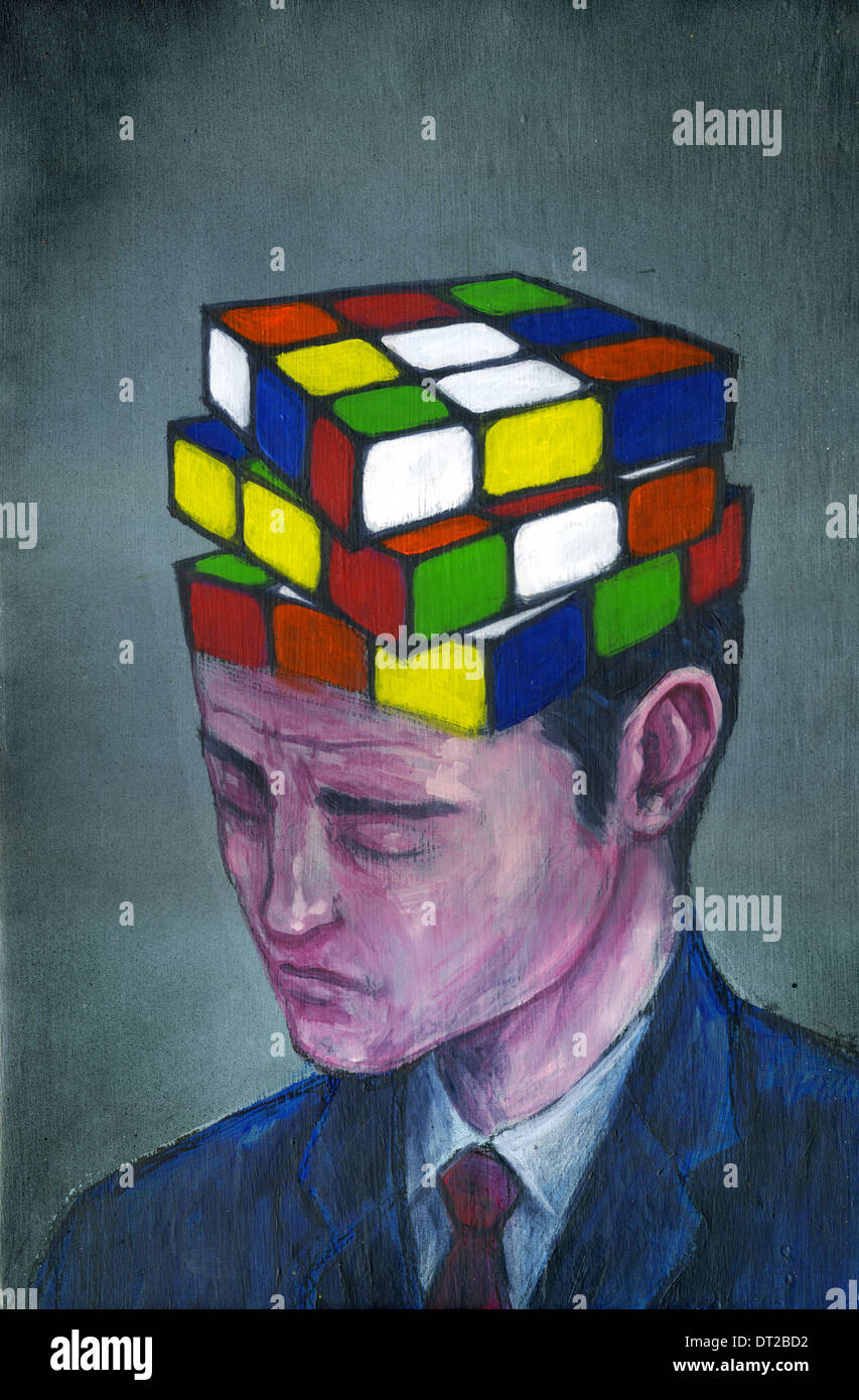 Immagine Illustrativa Di Imprenditore Con Blocco Puzzle Sulla Sua Testa Rappresenta La Confusione Foto Stock Alamy