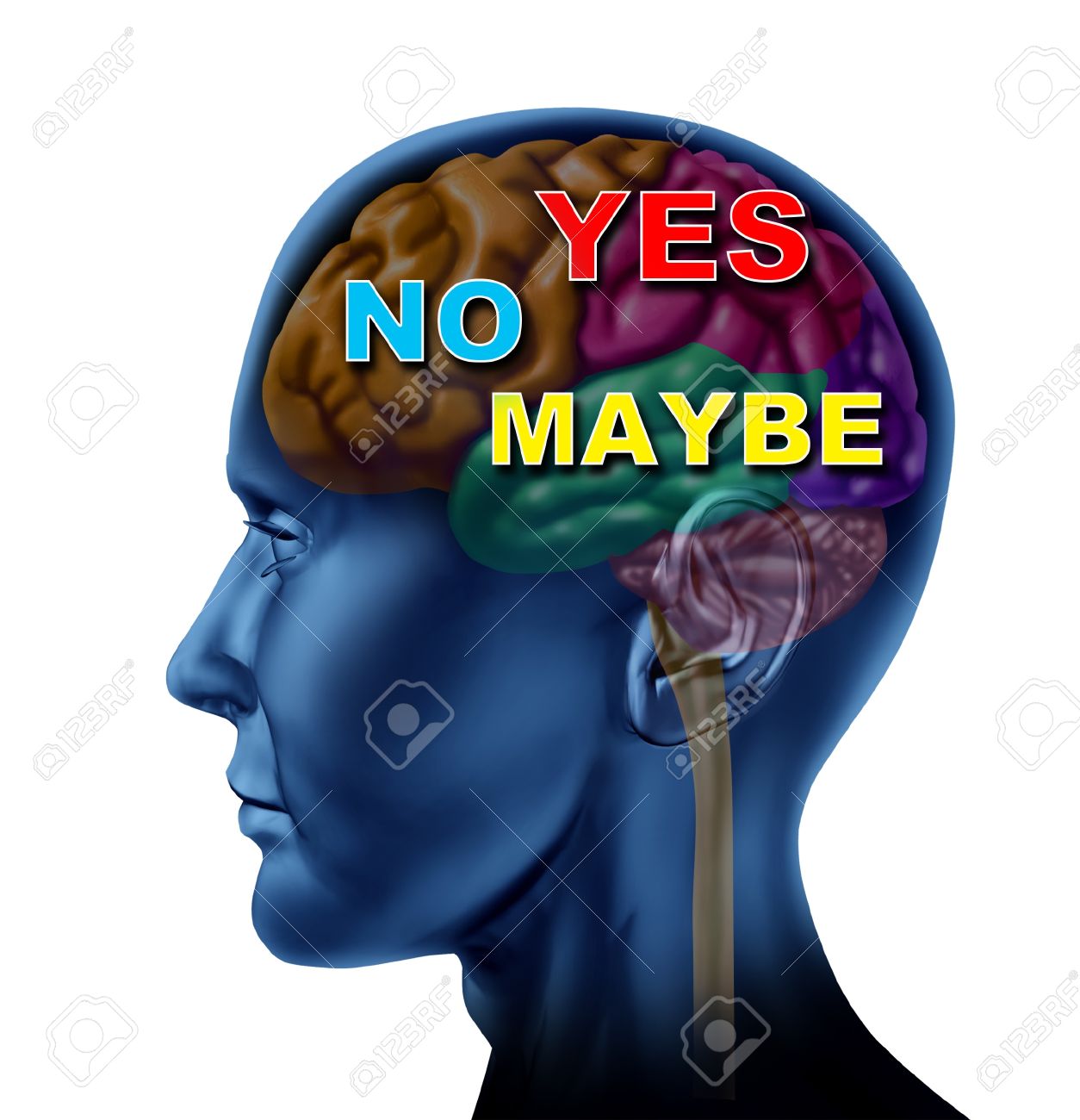 Immagini Stock Cervello Decisione Si No Forse Confusione Scelta E Risposte Come Una Testa Umana Vista Laterale Su Uno Sfondo Isolato Image