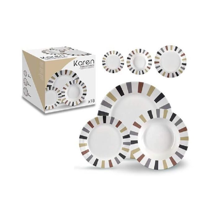 Servizio Piatti Karen In Porcellana 18 Pezzi Nei Toni Marroni