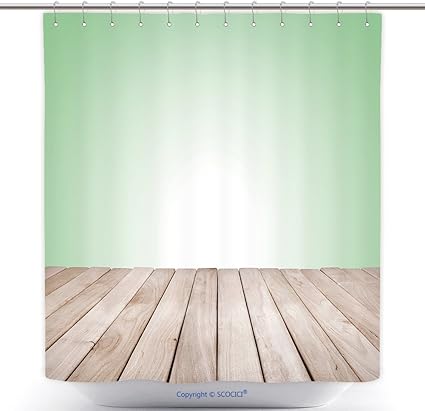 Tenda Doccia Durevole Pianale In Legno Con Sfondo Verde Sfumato Messa A Fuoco Della Piattaforma Tenda Da Doccia In Poliestere Con Ganci Amazon It Casa E Cucina