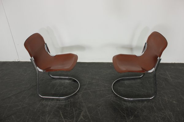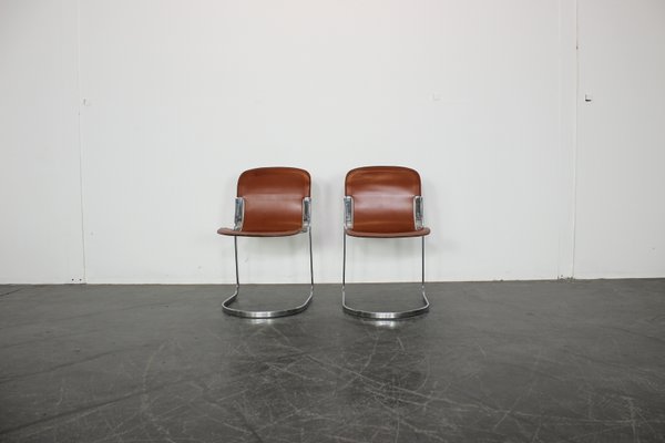 Sedie Da Pranzo Cantilever In Pelle Di Willy Rizzo Per Cidue Anni 70 Set Di 2 In Vendita Su Pamono