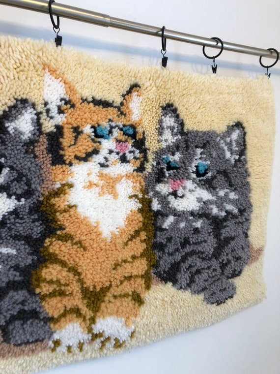 Vintage Latch Hook Cats Cat Decor 34 1 4 X 21 1 2 Etsy