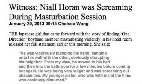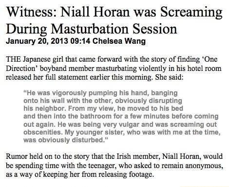 Witness Niall Horan Was Screaming During Masturbation Session January 13 09 14 Chelsea Wang The Japanese Pel Tht Came Forward Withthe Story Of Finding One Direction Boyband Member Masturbating Violently In His