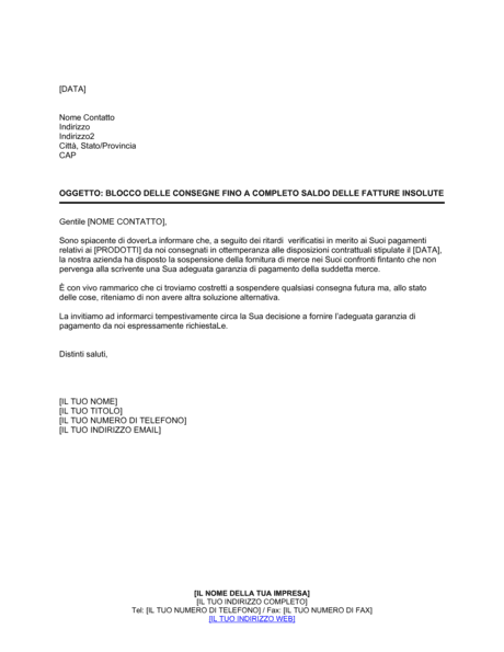 Blocco Delle Consegne Fino A Saldo Delle Fatture Modelli E Esempi Di Moduli Biztree Com