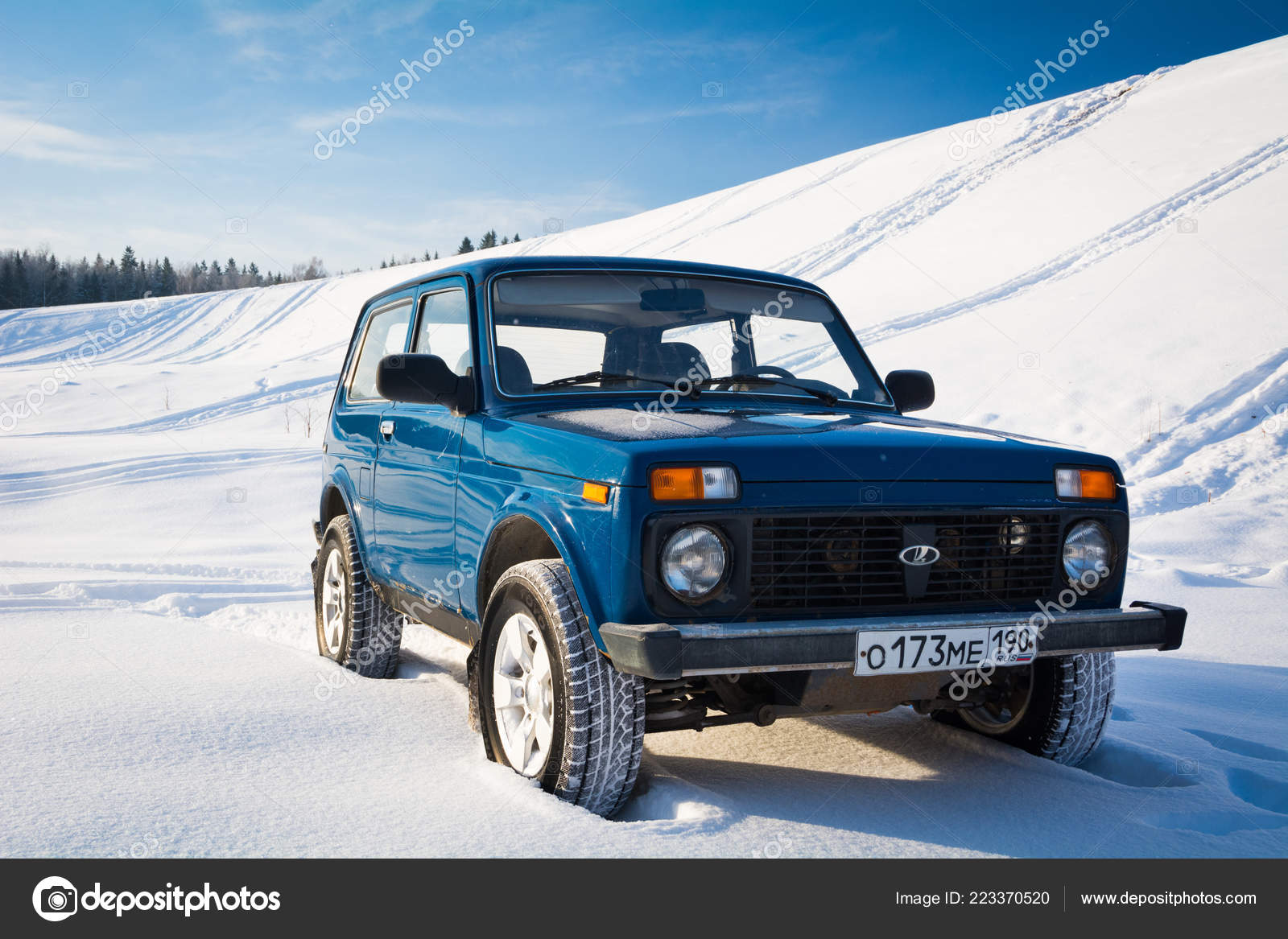 Blue Russian Offroad Car Lada Niva 4x4 Parked On The Snow Field Stock Photo Download Image Now Istock