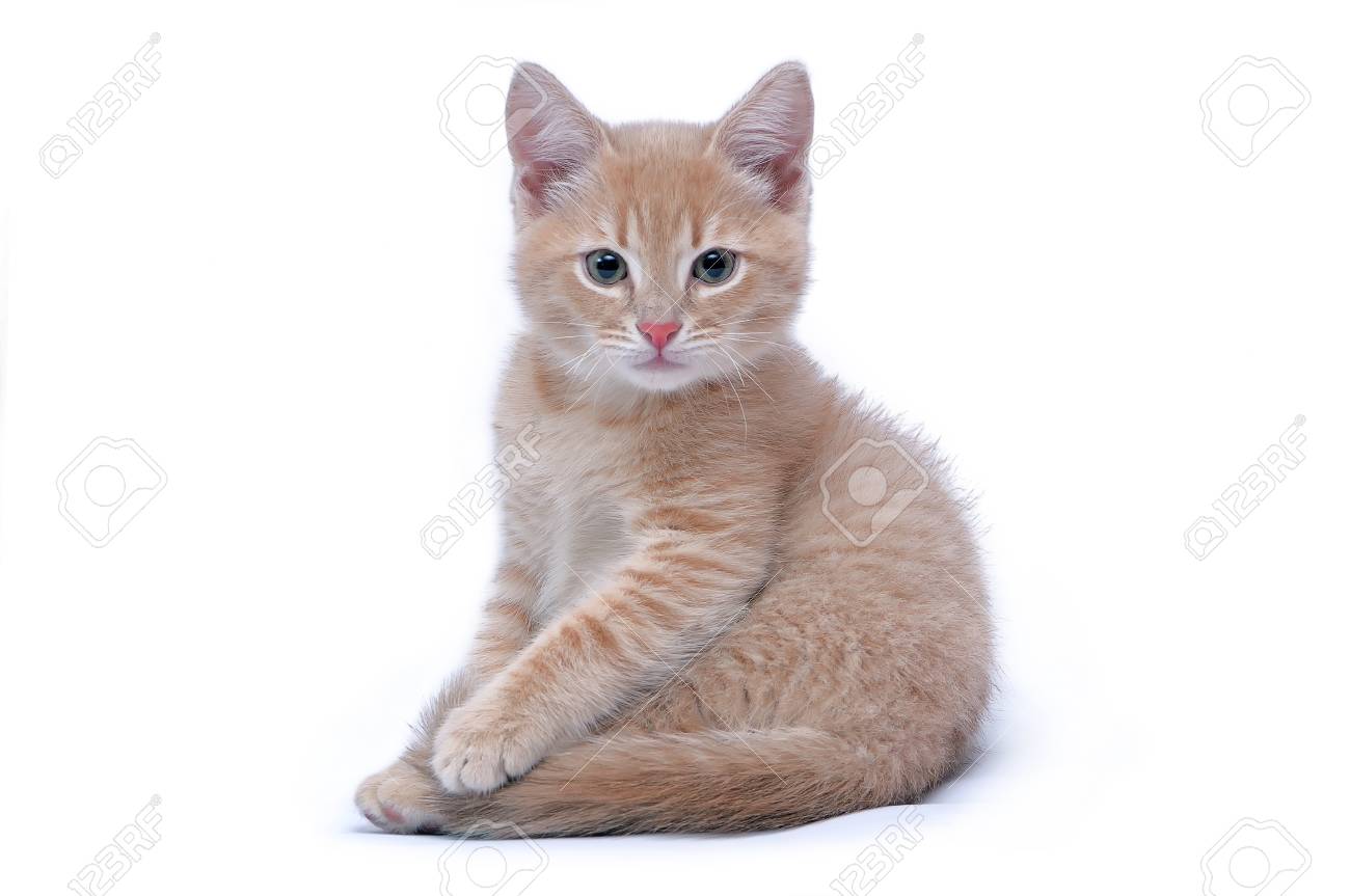 Immagini Stock Ritratto Del Piccolo Gattino Rosso Carino Che E Seduto E Guardando La Telecamera Isolato Su Uno Sfondo Bianco Image