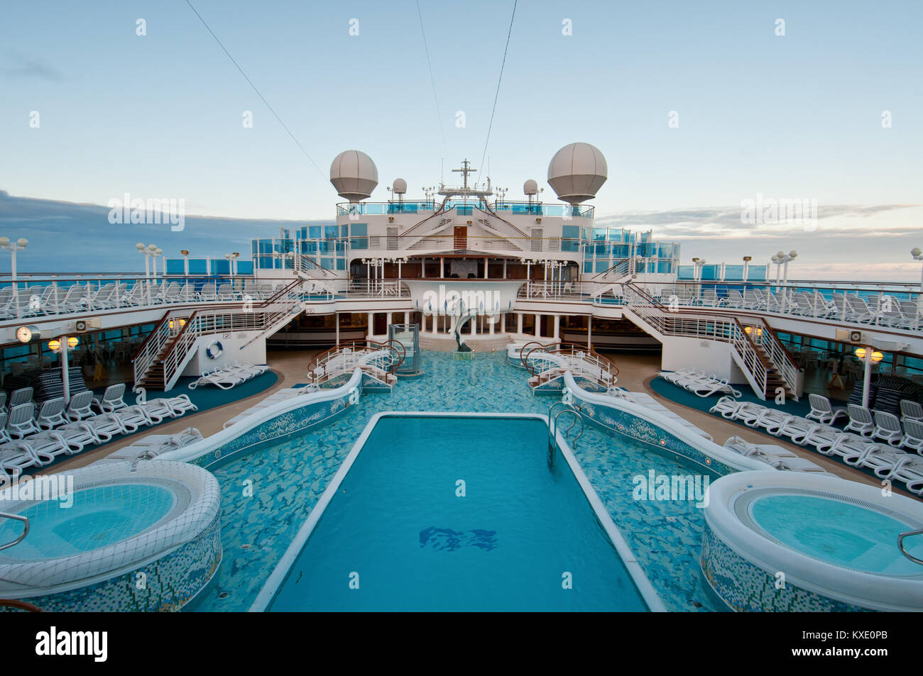 Vista Della Parte Superiore Del Ponte Della Nave Da Crociera Di Lusso Con Piscine E Attrezzature Spa Foto Stock Alamy