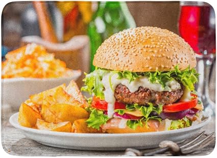 Tappetino Da Bagno Doppio Hamburger Colorato Hamburger Americano Con Patate Fritte Sul Piatto Bianco Arancione Patatine Carne Arredamento Bagno Tappeto Amazon It Casa E Cucina